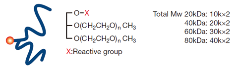 Furthermore, NOF has also developed activated branched PEGs, such as 3-arm and 4-arm branched derivatives.