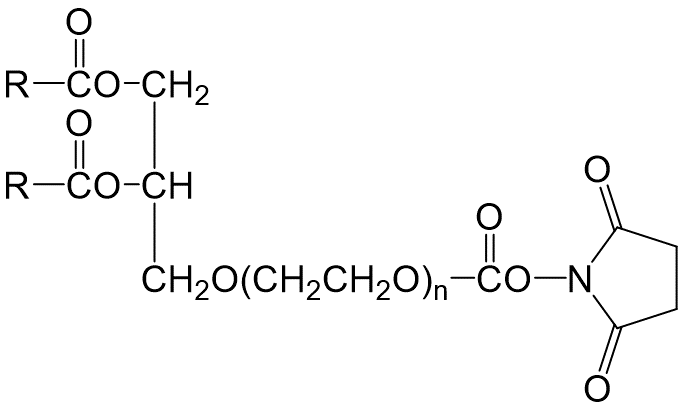 We have released activated PEG diacylglycerols which have the active group at PEG terminal end. The compound can provide the active targeting ability to LNP by introduction of ligand to PEG terminal end.