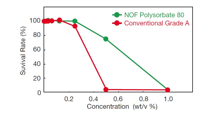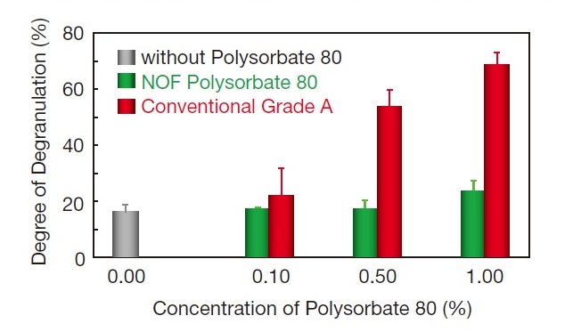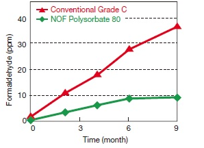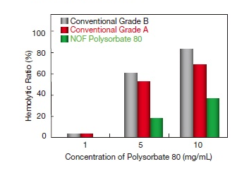 Polysorbate 80(HX2)™ produced by NOF CORPORATION is a ultrapure product of the highest quality in the world, with extremely low aldehyde and peroxide levels.