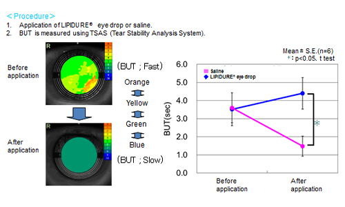 Lipidure which stabilizes tear film is useful for dry eye drops. LIPIDURE® has high hydrophilicity as well as tear film stabilizing effect and can also alleviate irritation from preservatives contained in eye drops.