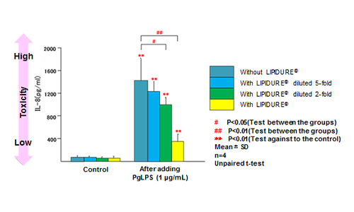 Lipidure®, which is cell membrane like polymer, prevents the adhesion of bacteria that cause dental caries, and protects mucosal cells of mouth from the toxicity of periodontal bacteria. Furthermore, Lipidure® suppresses bitterness in mouth. Lipidure is a very useful ingredient for toothpaste or mouthwash.
